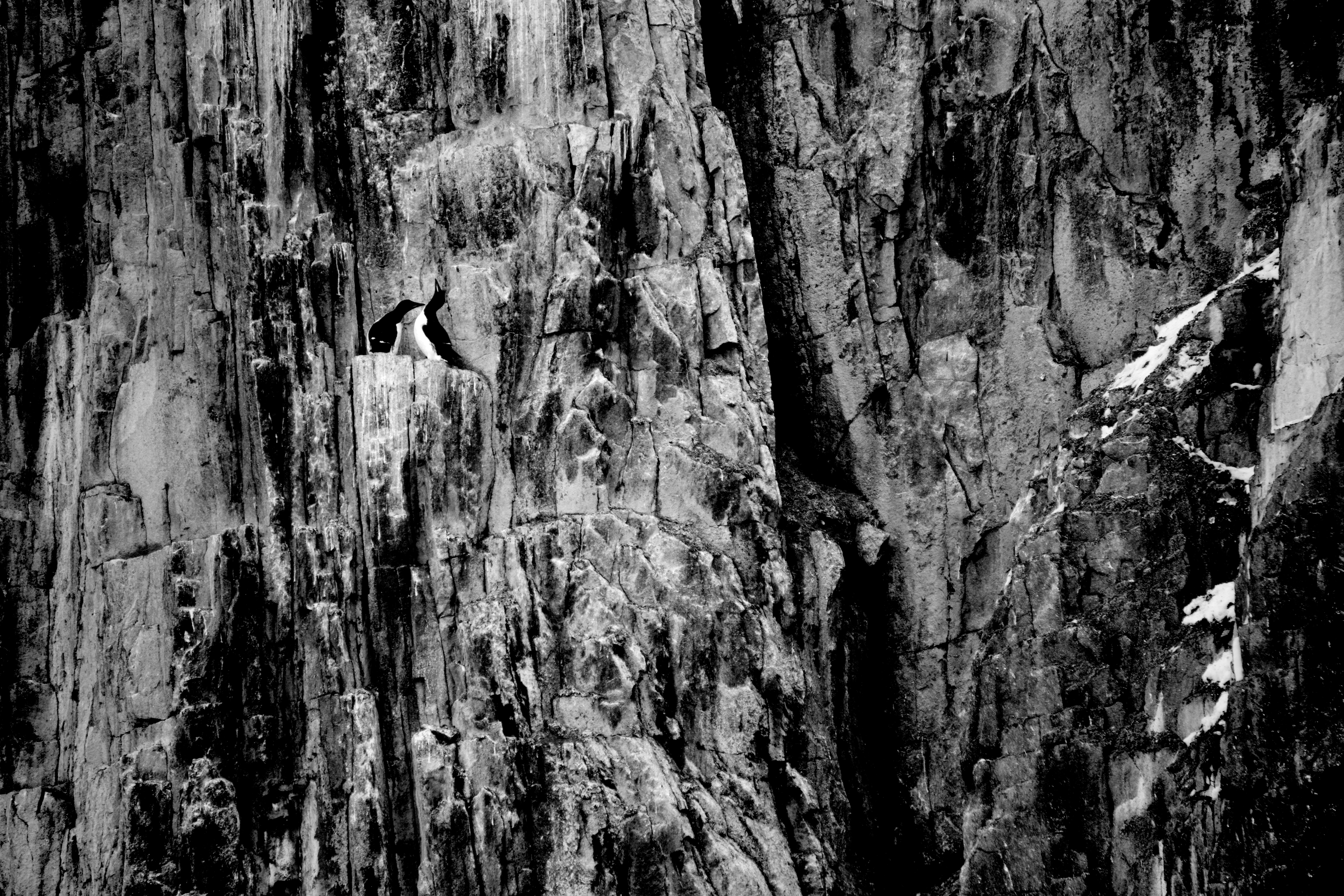Black and white guillemot pair on cliff