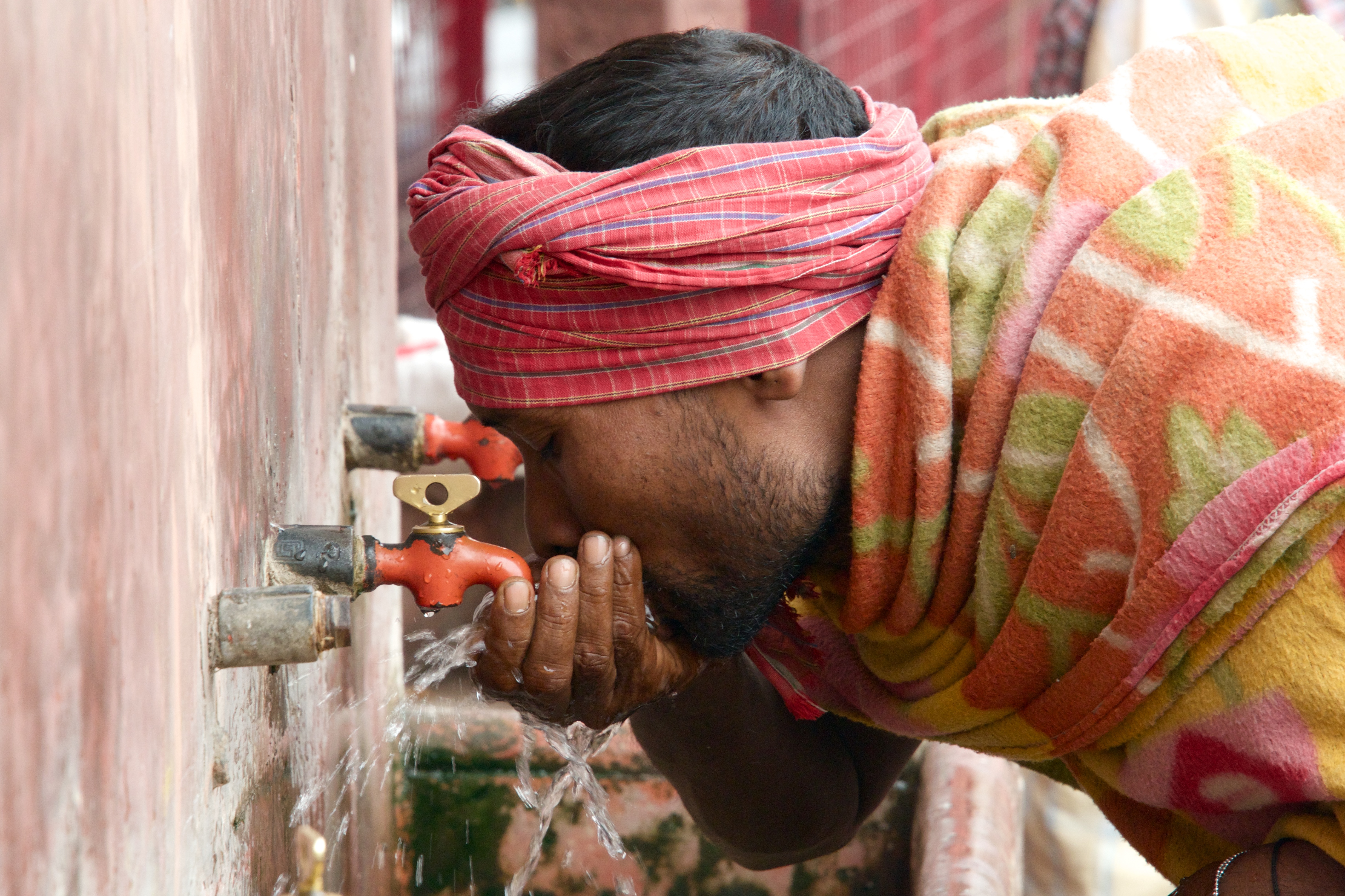 Indian drinking from water tap