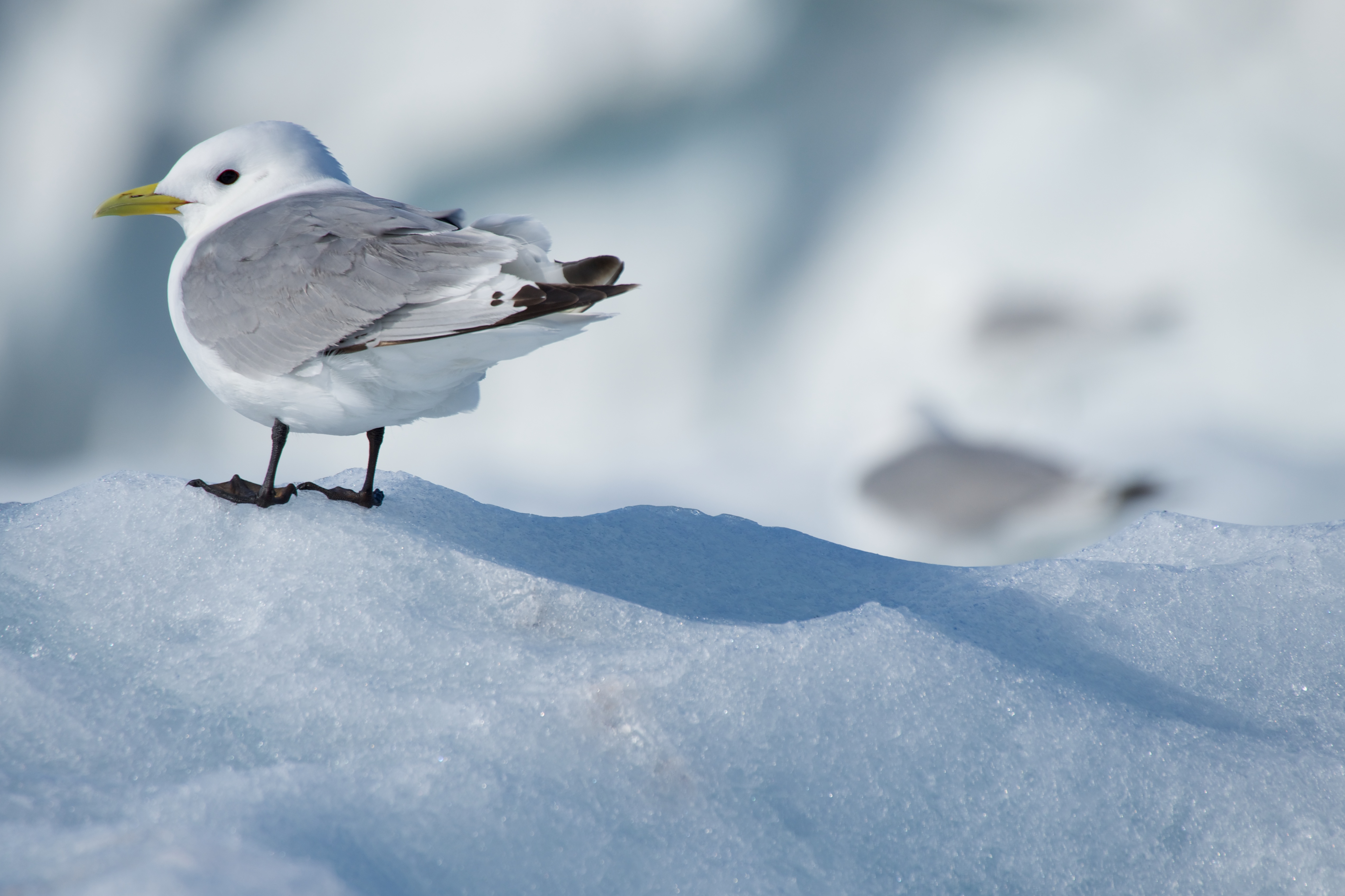 Kittiwake casting a shadow on ice floe