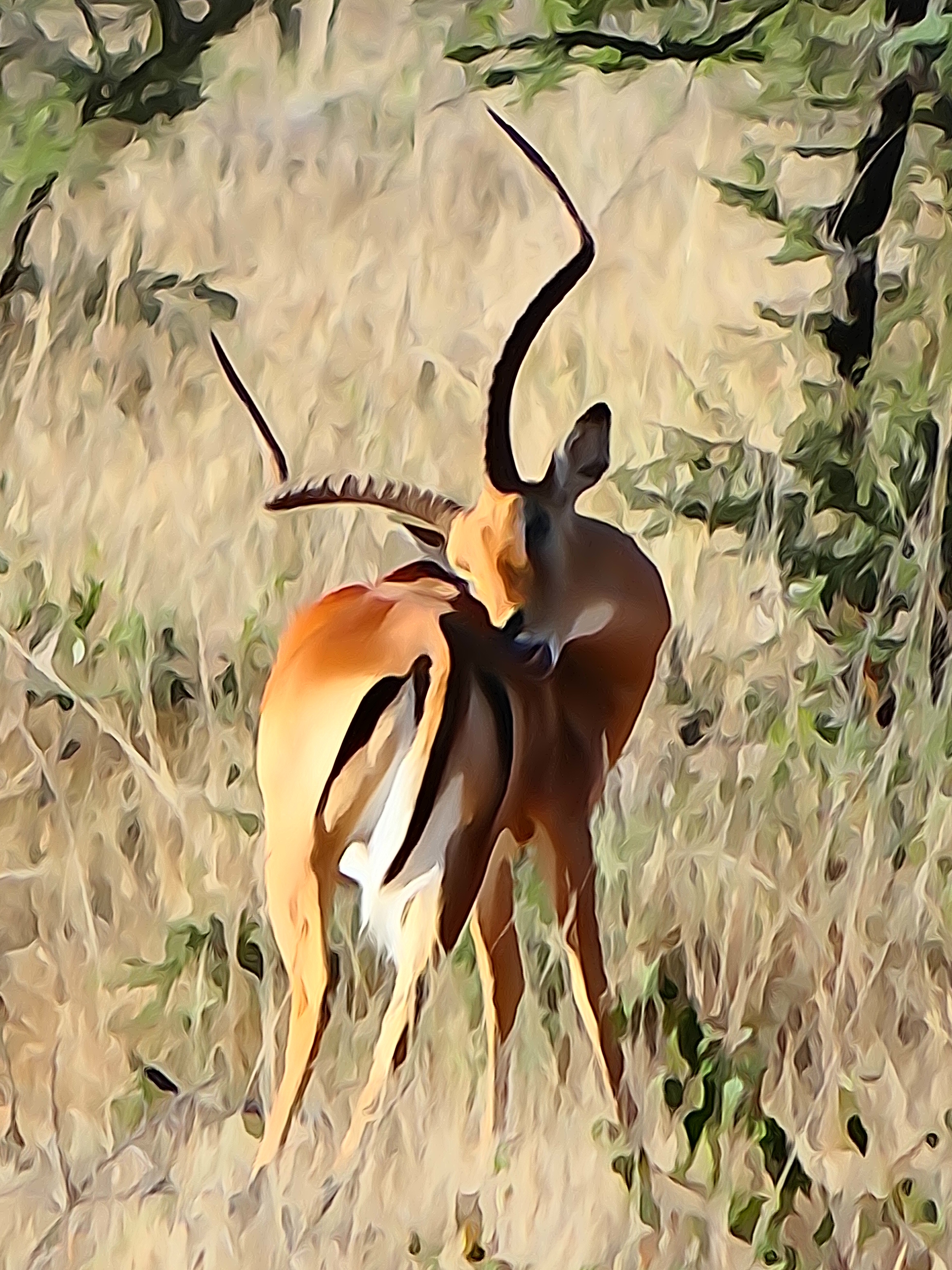 Male impala scratching himself (watercolour)