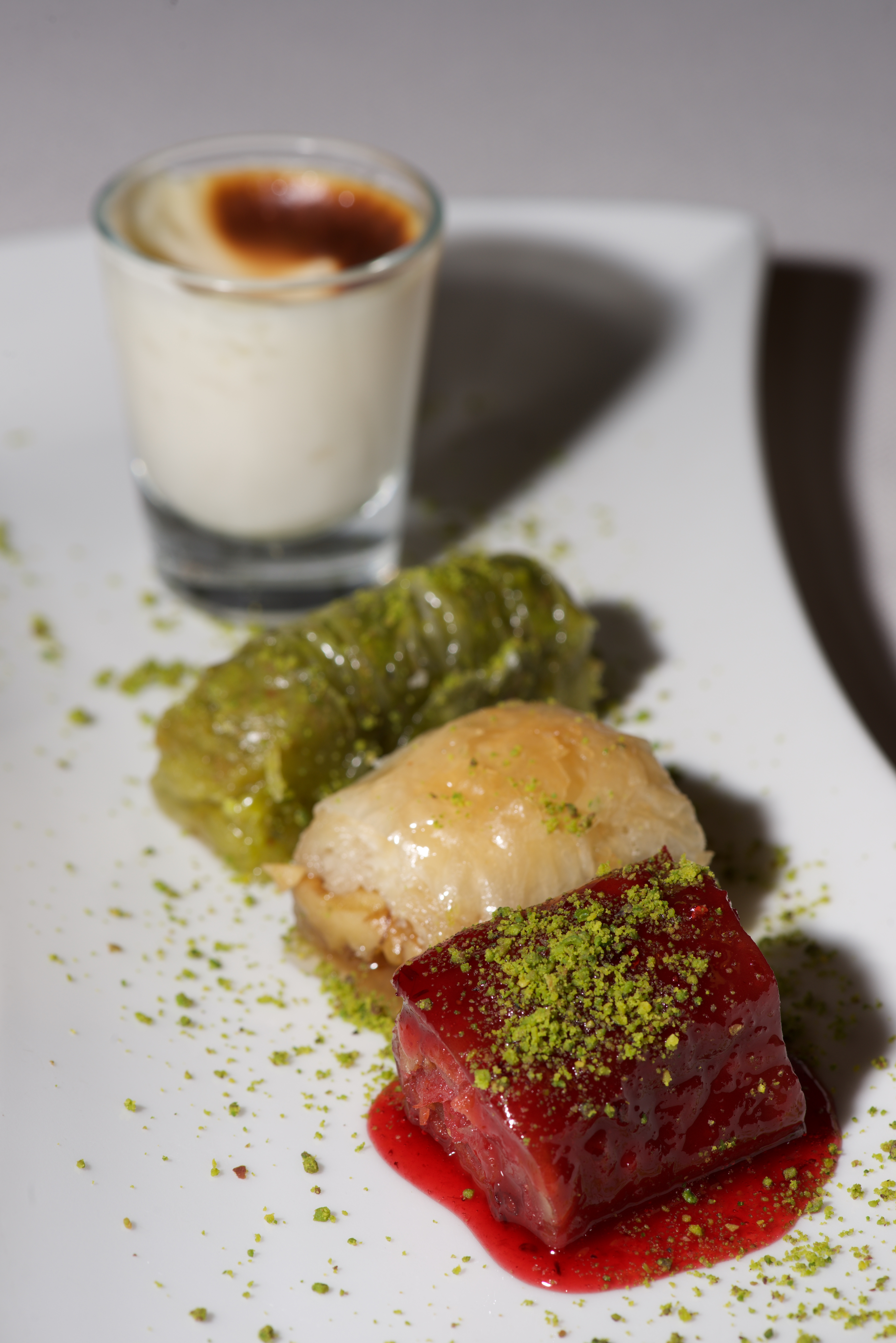 Published January 11, 2015 at 4912 × 7360 in Turkish dessert selection on white china plate.