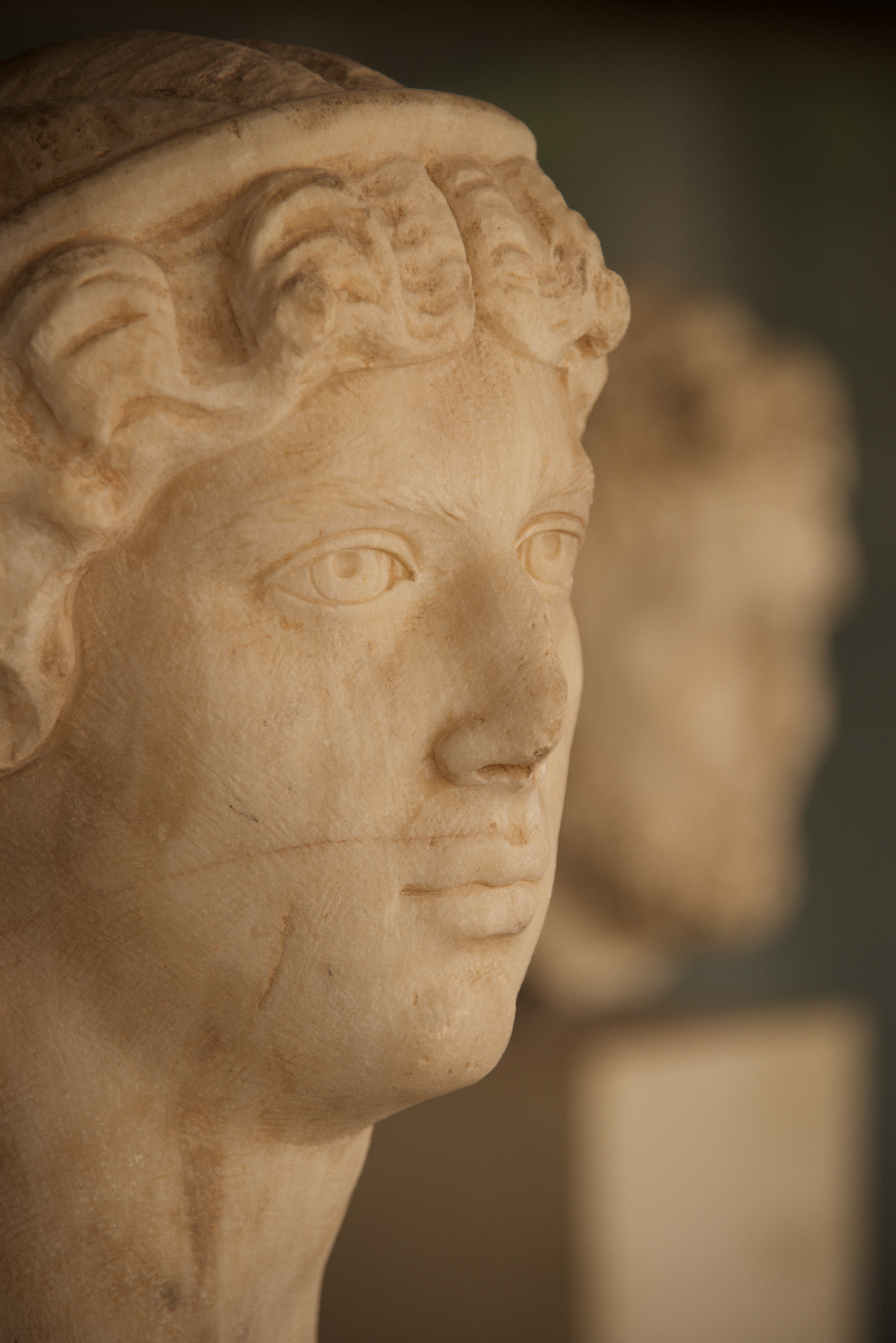 White marble head of woman beside man