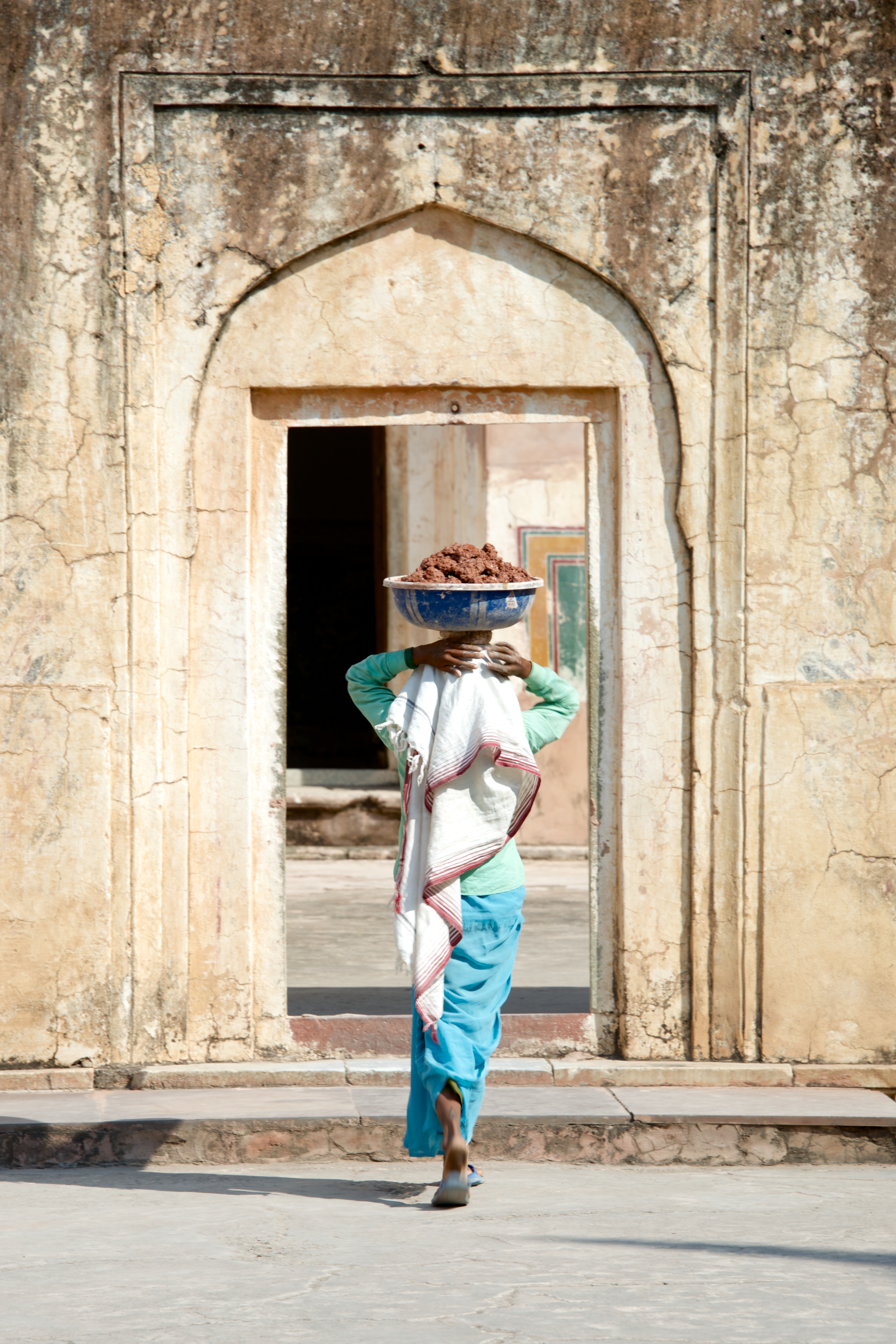 Woman carrying bowl on head